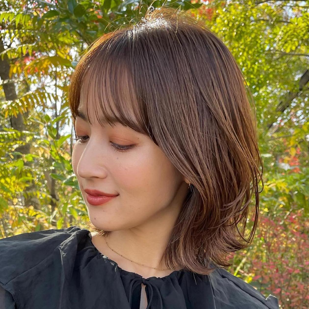 一般的に切りっぱなし風のスタイルは重めの仕上がりになることが多いですが、薄めのレイヤーと合わせると軽やかさが出て、若見えするスタイルにアップデートできます。顔周りの重心を低くすることもポイントです。