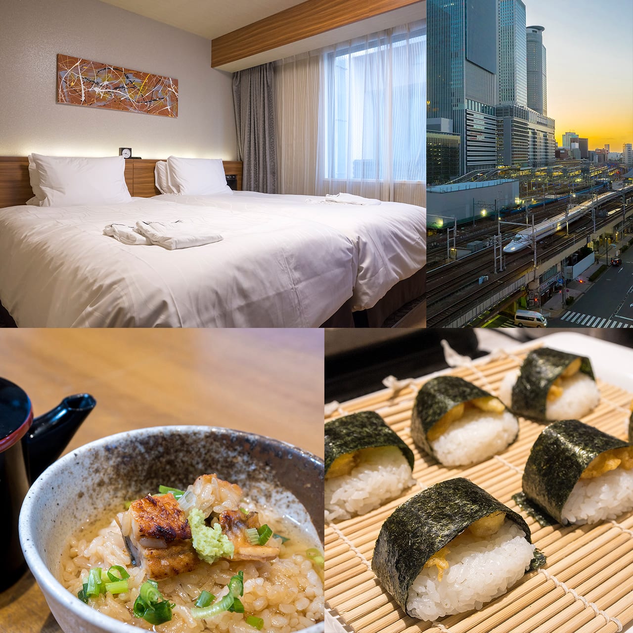 名古屋駅から徒歩8分の【リッチモンドホテル名古屋新幹線口】の注目ポイントは美味しい “名古屋めし” が大集合する朝食ビュッフェ。手頃な価格の客室は居心地よく、一部の客室では新幹線が見えるトレインビューも楽しめます。また、ホテル全体で高速Wi-Fiを利用できるのもうれしいです。
