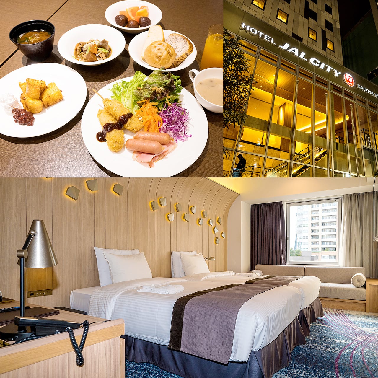 旅行やビジネスにぴったりの【ホテルJALシティ名古屋 錦】。館内や客室の上質な雰囲気に加え、名古屋めしをそろえた美味しい朝食ビュッフェはおすすめです。洗い場のあるバスルームは、全室レインシャワー付き。ワンランクアップのホテルステイを楽しめます。