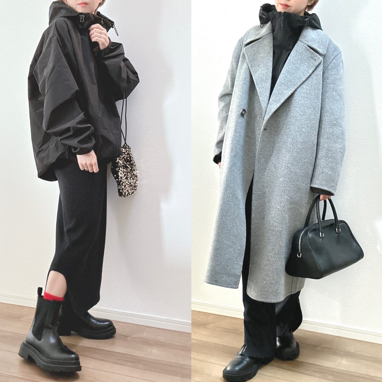 |異素材アウターとのミックスコーデで防寒と洒落感を両立