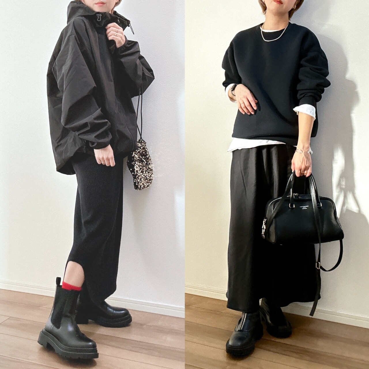 シックな黒を味方に、そして女性らしい素材感を合わせた異素材ミックスが、大人感と洗練さのあるカジュアルスタイルを完成させる鍵となります。ぜひ参考にしてみてくださいね。<text&photo:Hiromi Anzai>
