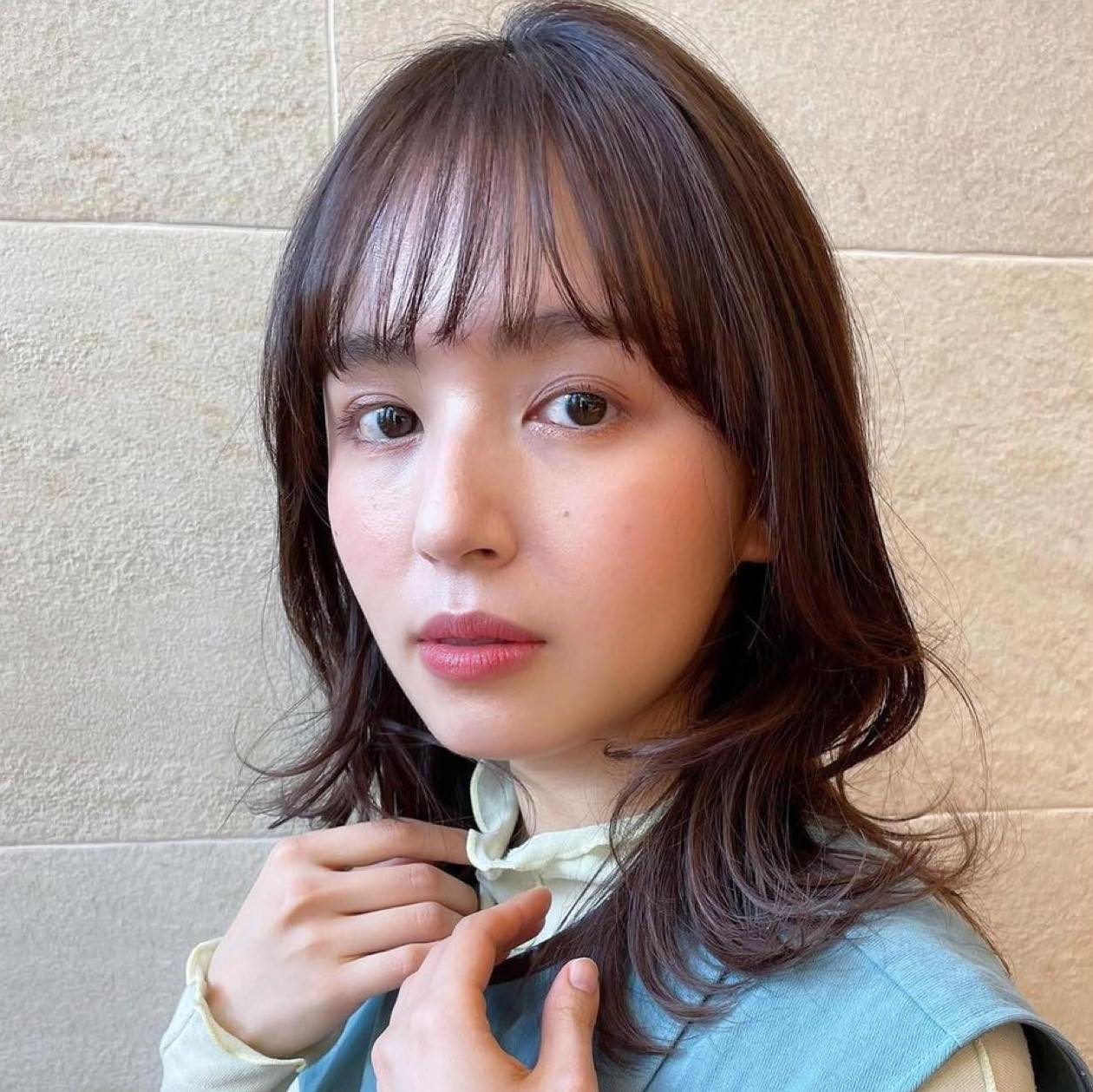 極薄の前髪が目元印象をグッと引き立て、レイヤー部分にボリューム感を持たせることで全体的に柔らかな印象を纏うことで上品さの中に女っぽさを演出しましょう。また、毛先に抜け感を出すのもポイントです。
