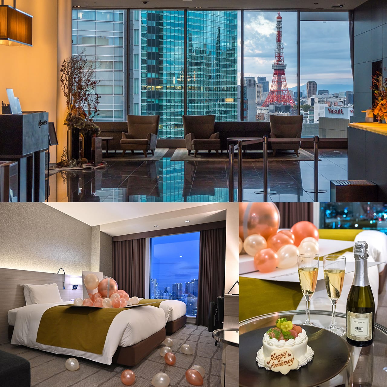 都会の眺望を楽しむなら、銀座8丁目にある【三井ガーデンホテル銀座プレミア】がおすすめ。16階のロビーからは、光り輝く東京タワーを一望。最上階の25階までの客室からも東京の景色を楽しめます。さらに三井ガーデンホテルのプレミアブランド全店で「記念日プラン」を用意。特別な日を祝ったり、東京観光を満喫するならおすすめのホテルです。