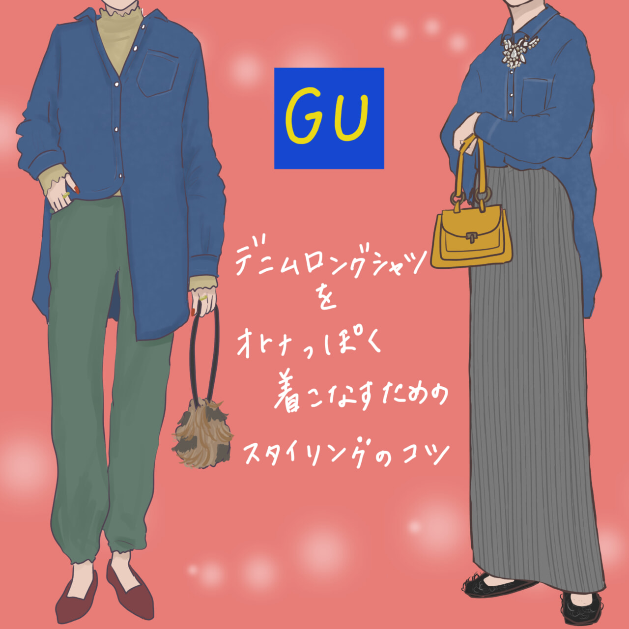 ニットやスウェットなど中心のコーデが多かった冬のカジュアルコーデから春コーデに移行するなら、ぜひ採り入れたいアイテムがレイヤードしやすいシャツ。中でもデニム素材のロングシャツは大人コーデに大活躍間違いなしです。そこで今回は、GU「デニムロングシャツ[長袖]+E」をピックアップして、大人っぽく着こなすコツを紹介します。