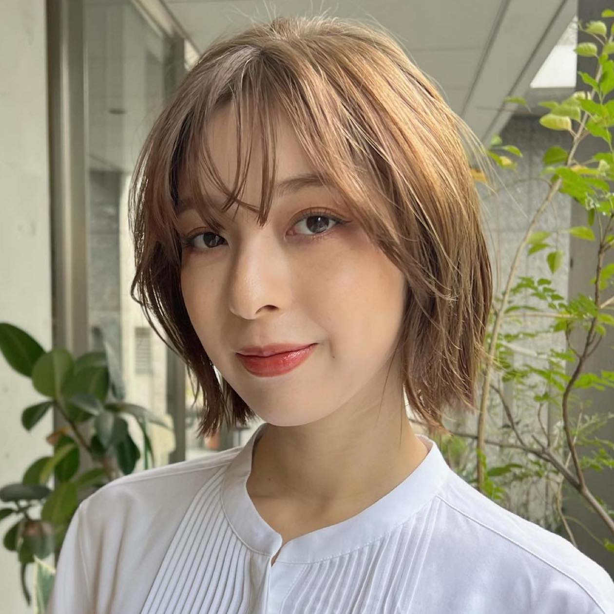 透け感のある前髪でおでこをカバーしつつ、毛先に動きを出すことで全体のバランスが整えましょう。