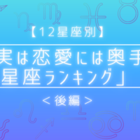 【12星座別】「実は恋愛には奥手な星座ランキング」<後編> 恋愛に奥手だと、なかなか恋が実らなくて悩んでいる方も多いのではないでしょうか? 今回は前回に引き続き、恋に奥手な星座ランキングを紹介します。 恋愛は受け身で待つだけではなく、自分からも行動することで幸せな恋 ... 【12星座別】「実は恋愛には奥手な星座ランキング」<後編>